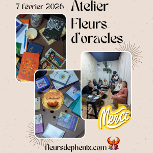J’ai eu l’occasion de participer à l’atelier fleurs angéliques qui s’est déroulé en 2 parties (théorique et pratique). Expérience incroyable, très enrichissante et plein de de bienveillance pour la compréhension de l’équipe invisible qui nous accompagne en permanence. Je garde précieusement le livret qui nous a été offert avec des informations personnalisées telles que nos trois anges de naissance. Peu importe votre niveau de connaissance ou de croyances, si vous êtes sur le chemin de l’éveil vous serez au bon endroit !